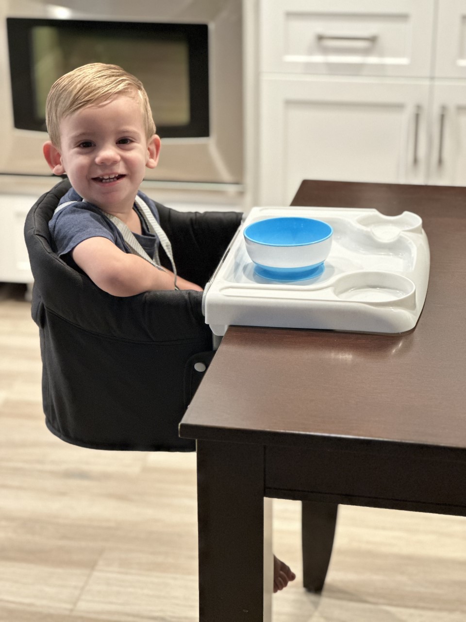 Our portable hook on high chair simplifies meals at home or away with a travel-friendly design and secure attachment to dining tables.