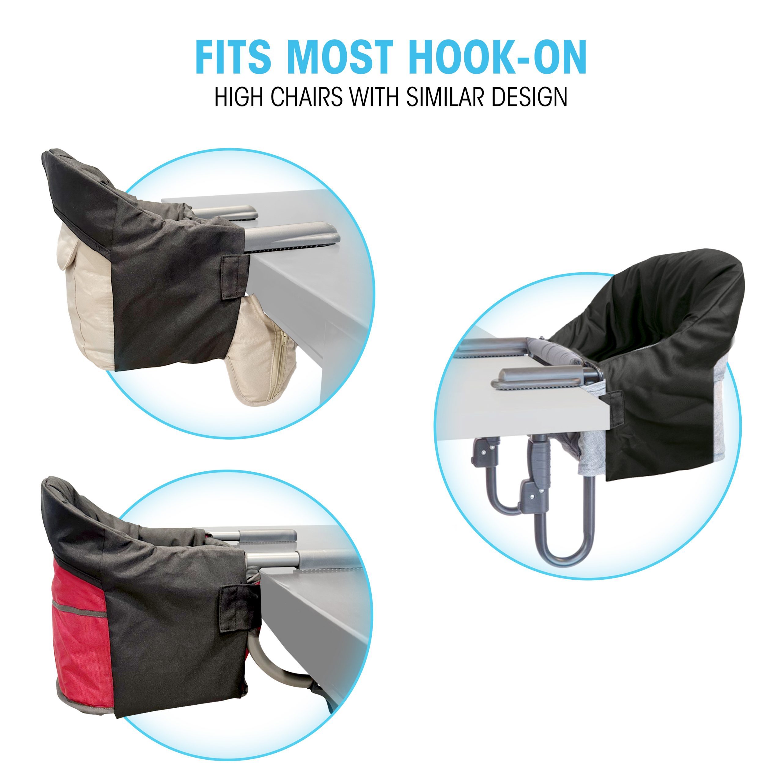 Compatible with most hook-on high chairs equipped with a 3 or 5-point harness.